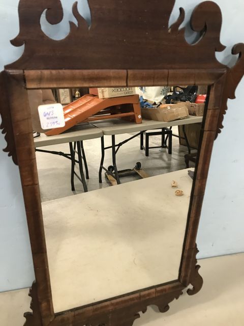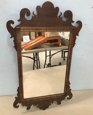 Antique Small Chippendale Style Wall Mirror, has splits around mirror frame, 22"h., 12"w. Antique Small Chippendale Style Wall Mirror, has splits around mirror frame, 22"h., 12"w.