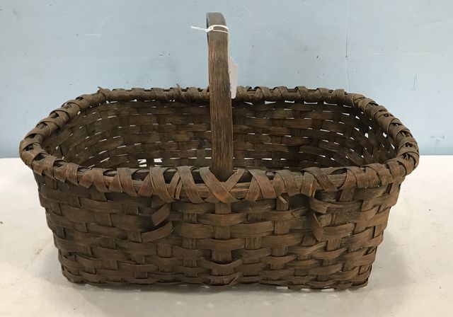 Old Split Oak Woven Handed Basket, has some wear spots, 12"h., 18"w. Old Split Oak Woven Handed Basket, has some wear spots, 12"h., 18"w.