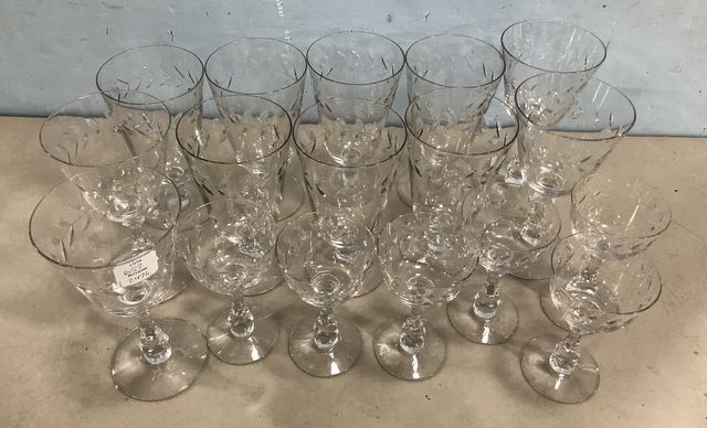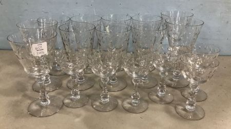 Group of Leaf Pattern Stemware, glass, 17 total pieces. Group of Leaf Pattern Stemware, glass, 17 total pieces.