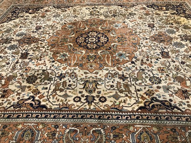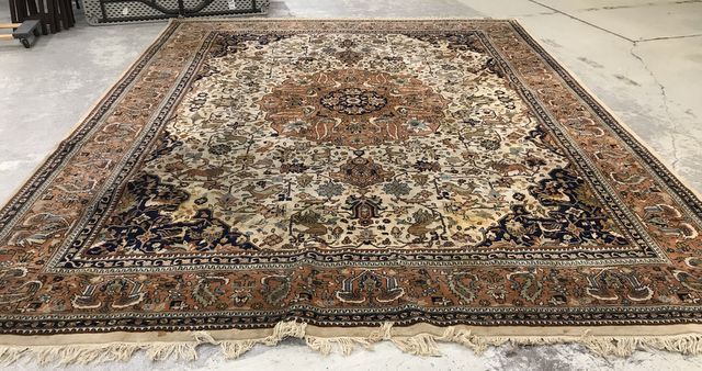Large Karastan Style Area Rug, 11'8 x 15', does have stains in areas, needs cleaning, well made woven wool rug, heavy. Large Karastan Style Area Rug, 11'8 x 15', does have stains in areas, needs cleaning, well made woven wool rug, heavy.