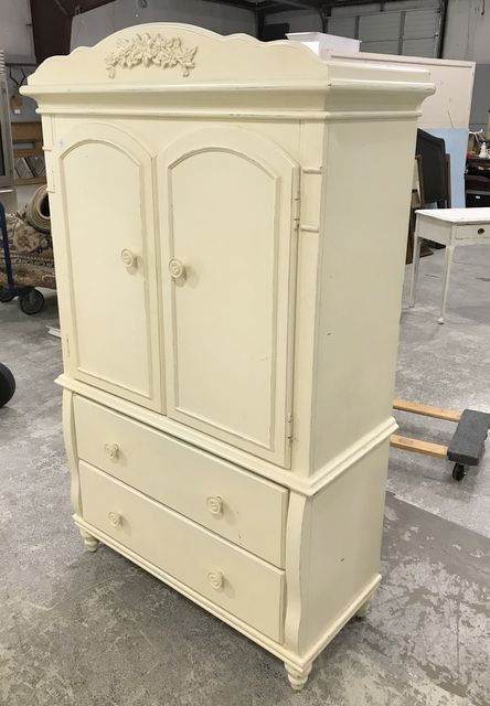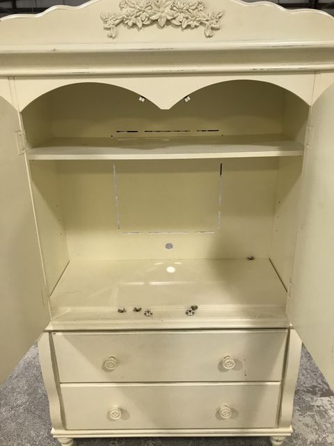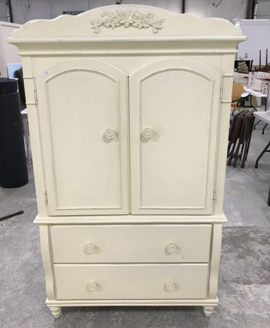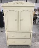 Modern Painted P.J. Kids Armoire, storage tv cabinet, two bottom storage drawers, minor wear, footed, 68"h., 41"w., 18"d. Modern Painted P.J. Kids Armoire, storage tv cabinet, two bottom storage drawers, minor wear, footed, 68"h., 41"w., 18"d.