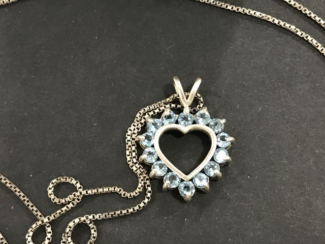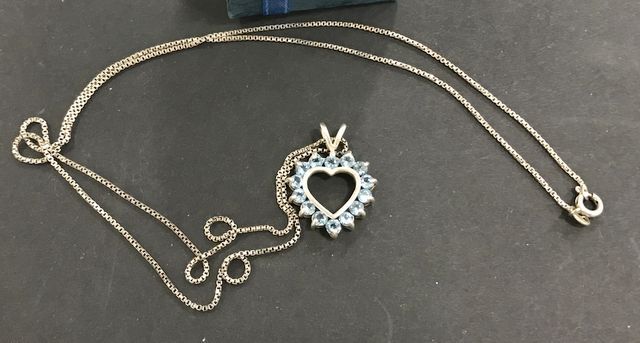 Necklace .925 Italy Silver with Heart With Blue Stones. Necklace .925 Italy Silver with Heart With Blue Stones.