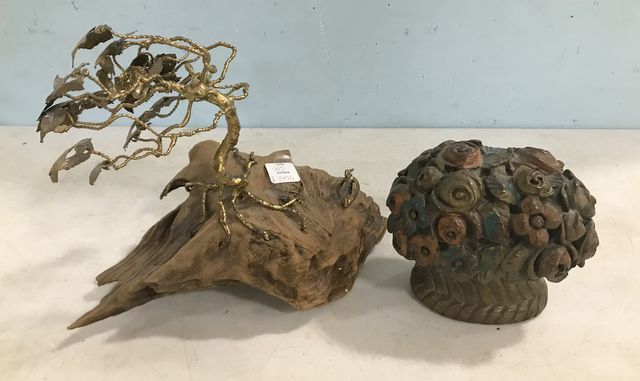 Gulf Sculptures Tree and drift style wood 10"h. and Heavy Composite Flower Bouquet 6"h. Gulf Sculptures Tree and drift style wood 10"h. and Heavy Composite Flower Bouquet 6"h.