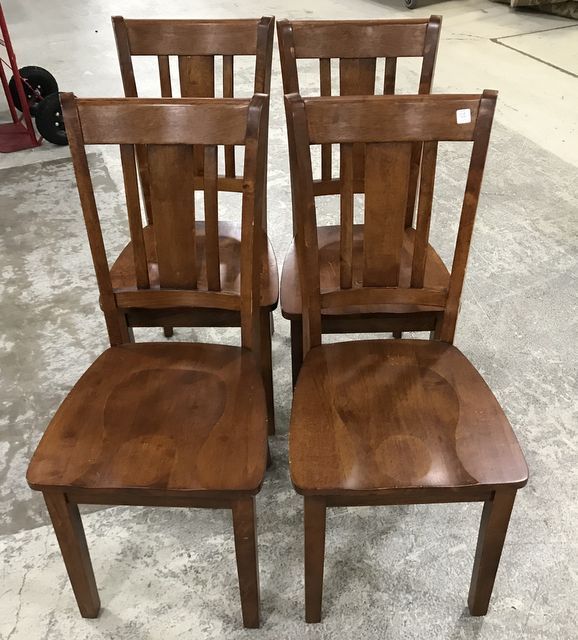 1990's Oak Finish Dining Side Chairs, has scratches on finish, 38"h. 1990's Oak Finish Dining Side Chairs, has scratches on finish, 38"h.