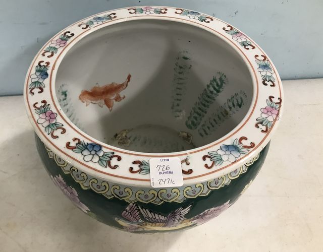 Chinese Porcelain Fish Bowl Planter, hand painted, 8"h., 10"dia. Chinese Porcelain Fish Bowl Planter, hand painted, 8"h., 10"dia.