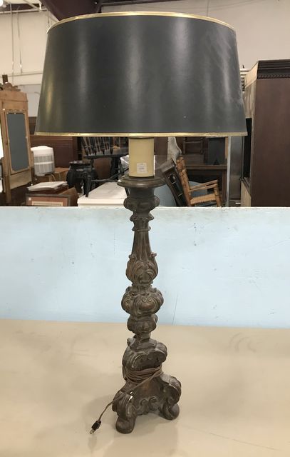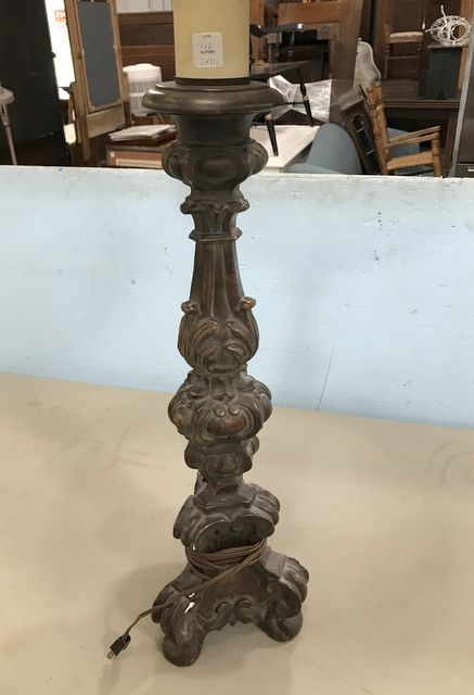 Large Plaster Rustic Style Column Lamp, good shade, has some small nics in plaster, 40"h. Large Plaster Rustic Style Column Lamp, good shade, has some small nics in plaster, 40"h.