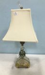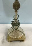 Etched glass and brass lamp, good shade, 25"h. Etched glass and brass lamp, good shade, 25"h.