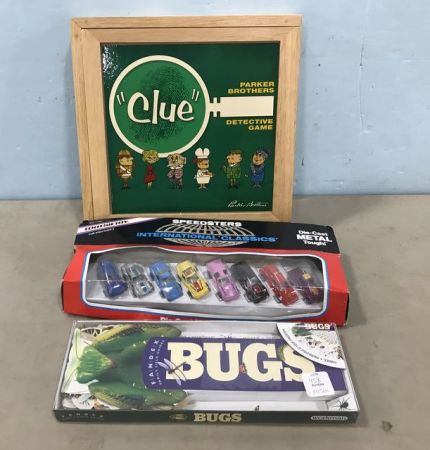 Parker Brothers Clue Game, Bugs, Speedster Die Cast Metal Cars. Parker Brothers Clue Game, Bugs, Speedster Die Cast Metal Cars.