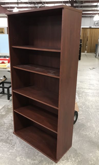 Bush Co. Pressed Wood Cherry Finish Bookcase, four shelves, 73"h., 46"w., 15"d. Bush Co. Pressed Wood Cherry Finish Bookcase, four shelves, 73"h., 46"w., 15"d.