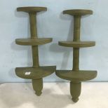 Two Wood Painted Three Shelf Wall Shelves, 21"h. Two Wood Painted Three Shelf Wall Shelves, 21"h.