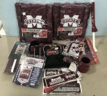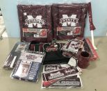 Mississippi State Accessories, cooler, ceramic mug, car window flag, Team Flag 28" x 44", Licenses plates, decals, House Flag, two banner flags, two stadium seats. Mississippi State Accessories, cooler, ceramic mug, car window flag, Team Flag 28" x 44", Licenses plates, decals, House Flag, two banner flags, two stadium seats.