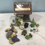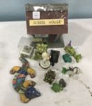School House and Animal Figurines, lizard, frogs, and decor. School House and Animal Figurines, lizard, frogs, and decor.