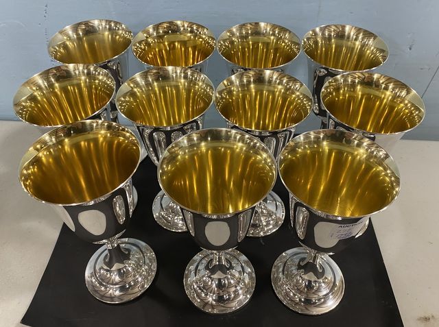 11 International Sterling Goblets, #P664, good condition, 6 1/2"h. weight is 64.945 ozt., 11 International Sterling Goblets, #P664, good condition, 6 1/2"h. weight is 64.945 ozt.,