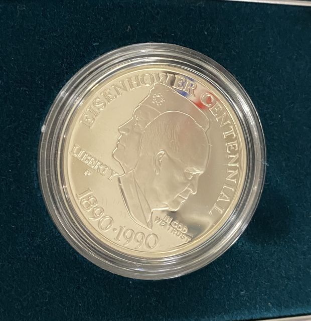 United States Eisenhower Centennial Silver Dollar, proof, 90% silver, in case. United States Eisenhower Centennial Silver Dollar, proof, 90% silver, in case.