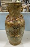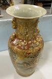 Large Chinese Satsuma Style Porcelain Vase, hand painted, gold gilt, Warrior, good condition, 24"h. Large Chinese Satsuma Style Porcelain Vase, hand painted, gold gilt, Warrior, good condition, 24"h.