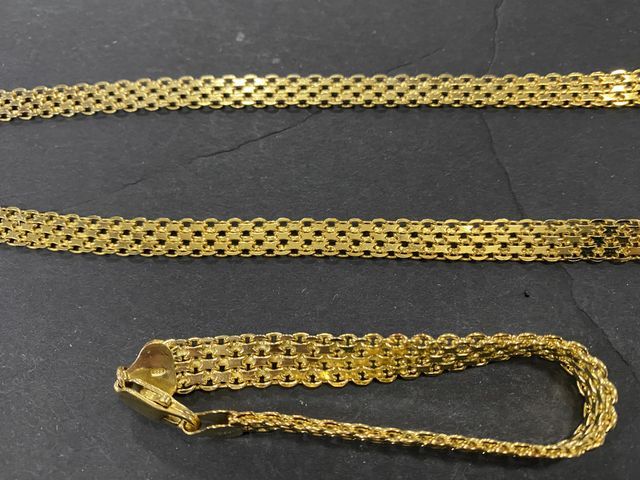 .925 Sterling Necklace and Bracelet, gold finish, necklace is 20" long, 1.210 ozt. .925 Sterling Necklace and Bracelet, gold finish, necklace is 20" long, 1.210 ozt.