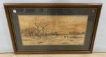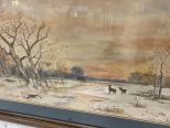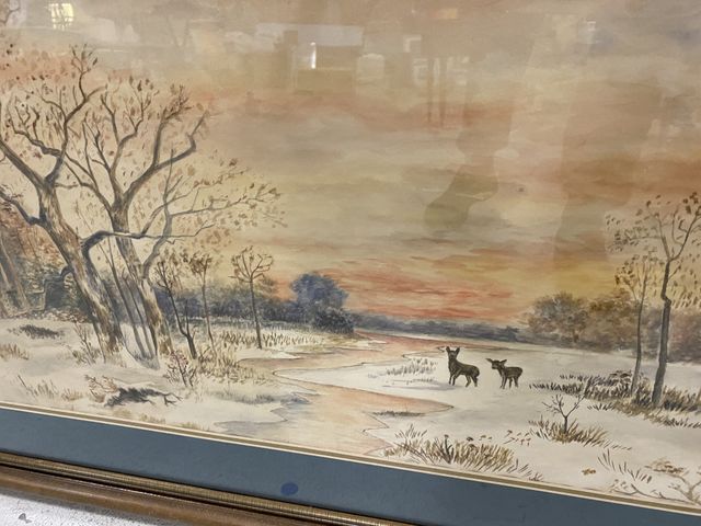 Watercolor Landscape and Whitetail Deer, on paper, matted, framed, no signature, 23"h., 37"w. Watercolor Landscape and Whitetail Deer, on paper, matted, framed, no signature, 23"h., 37"w.