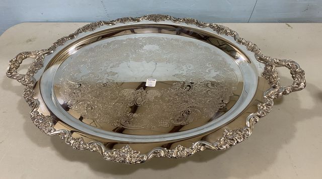 E.P.C.A Silver Plate Footed Serving Tray, handled, good condition, 30"w. E.P.C.A Silver Plate Footed Serving Tray, handled, good condition, 30"w.