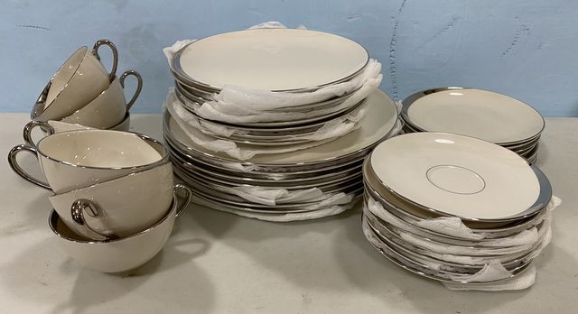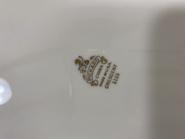 Pickard "Crescent" China Set, made in USA, 8 dinner plates, 8 salad plates, 8 dessert plates, 8 saucers, 8 cups. Pickard "Crescent" China Set, made in USA, 8 dinner plates, 8 salad plates, 8 dessert plates, 8 saucers, 8 cups.