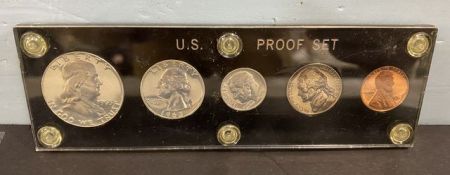 1963 U.S. Proof set, Silver half dollar, Silver quarter, Silver dime, nickel, cent, in case. 1963 U.S. Proof set, Silver half dollar, Silver quarter, Silver dime, nickel, cent, in case.