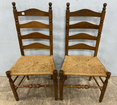 Pair of Country French Woven Seat Side Chairs, slat back, woven seats. Pair of Country French Woven Seat Side Chairs, slat back, woven seats.