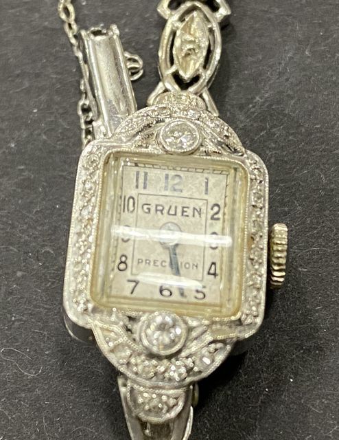 Ladies 14K Gruen Precision Movement Watch, running, light wear, marked 14K. Ladies 14K Gruen Precision Movement Watch, running, light wear, marked 14K.
