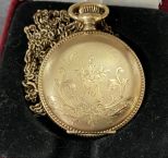 Elgin Ladies Pocket Watch and Chain, appears to be gold plated, included chain, engraved Sept 23 1899, 25 years, 7 jewels, runs when shaken. Elgin Ladies Pocket Watch and Chain, appears to be gold plated, included chain, engraved Sept 23 1899, 25 years, 7 jewels, runs when shaken.