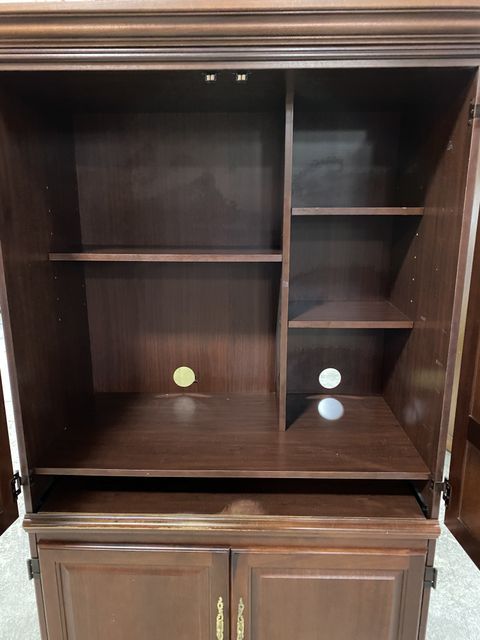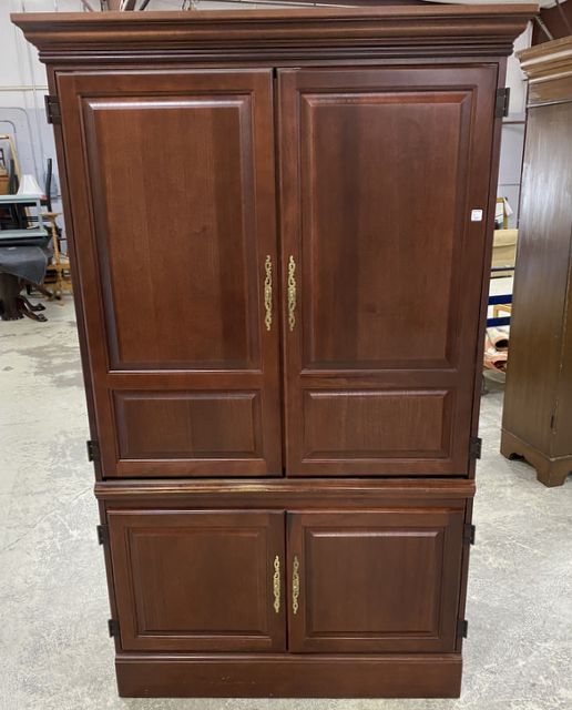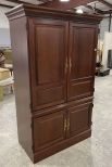 Modern Cherry Computer Armoire, one piece, four door, has some wear spots on front trim, 76"h., 42"w., 22"d. Modern Cherry Computer Armoire, one piece, four door, has some wear spots on front trim, 76"h., 42"w., 22"d.
