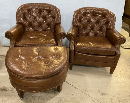 648 Pair of Leathercraft Arm Chair with One Ottoman
