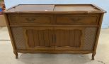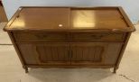 Vintage Country French Record/Radio Cabinet , Magnavox record player and radio, has speakers, sliding top, light wear, 28"h., 48"w., 14"d. Vintage Country French Record/Radio Cabinet , Magnavox record player and radio, has speakers, sliding top, light wear, 28"h., 48"w., 14"d.