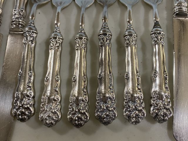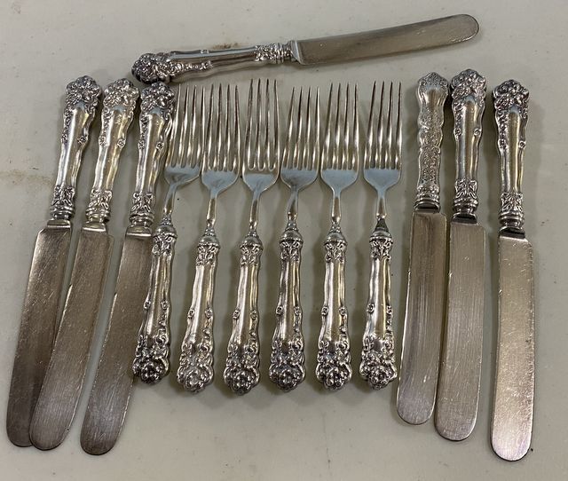 Wm Rogers Silver Plate Forks and Knives, good condition, one not matching. Wm Rogers Silver Plate Forks and Knives, good condition, one not matching.