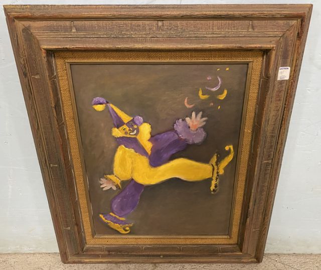 Clown Painting on canvas, signed Tina, wood framed, 25"h., 22"w. Clown Painting on canvas, signed Tina, wood framed, 25"h., 22"w.