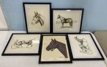 Five Kentucky Derby Vintage Prints, Secretariat, Kentucky Pacer, Trotter, Standardred Stallion, Trotting Horse, matted, framed, 12"h. 10"w. Five Kentucky Derby Vintage Prints, Secretariat, Kentucky Pacer, Trotter, Standardred Stallion, Trotting Horse, matted, framed, 12"h. 10"w.