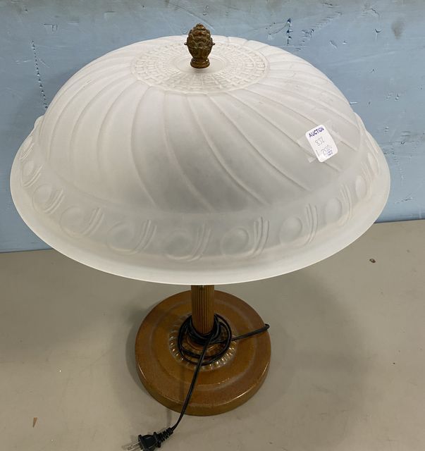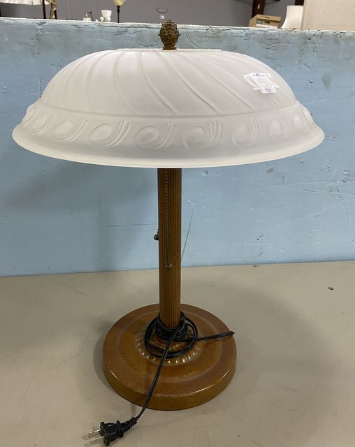 Frosted Glass shade desk lamp, dual light, good condition, 19"h. Frosted Glass shade desk lamp, dual light, good condition, 19"h.