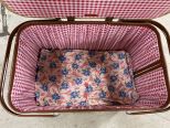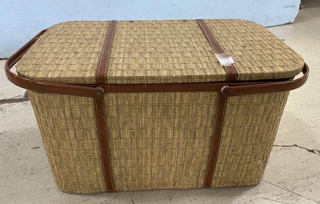 Vintage Picnic Basket, handles, cloth lined, no accessories, 12"h., 20"w. Vintage Picnic Basket, handles, cloth lined, no accessories, 12"h., 20"w.