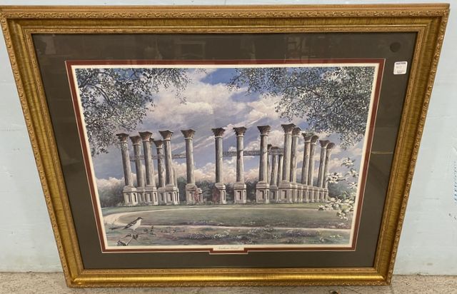 Windsor Ruins "Southern Grand" Signed Print, Alice Thurmond, numbered 261/1000, gold gilt framed, matted, 27"h., 33"w. Windsor Ruins "Southern Grand" Signed Print, Alice Thurmond, numbered 261/1000, gold gilt framed, matted, 27"h., 33"w.