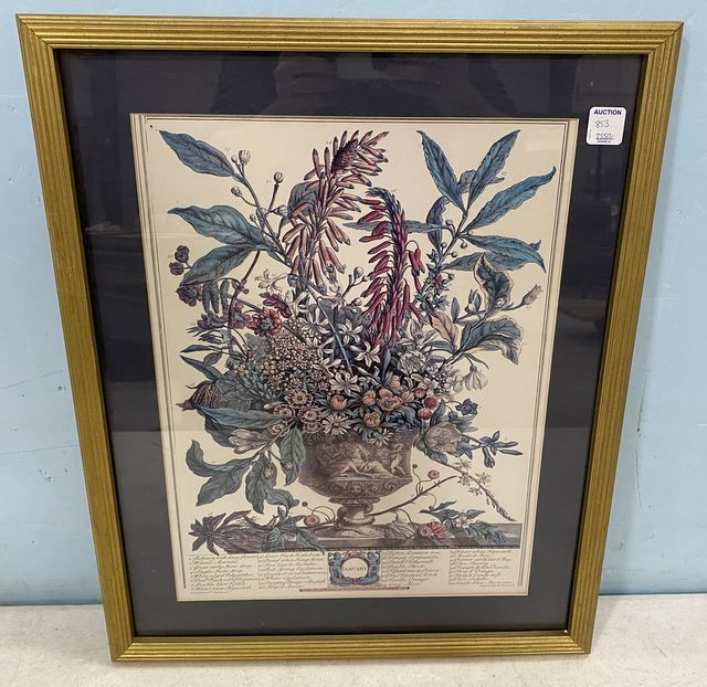 Janurary Botanical Print, matted, framed, 21"h., 17"w. Janurary Botanical Print, matted, framed, 21"h., 17"w.