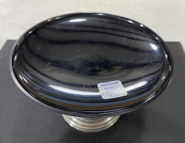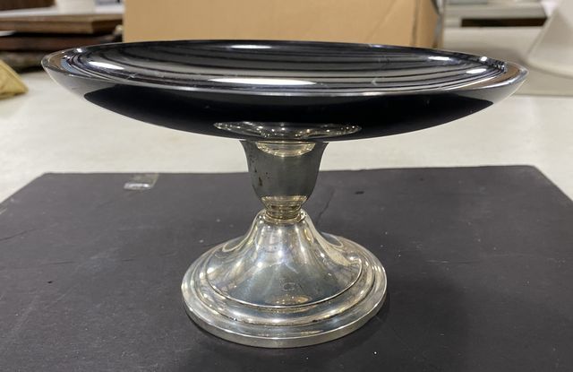 Newport Weighted Sterling Base Compote, black plastic top, 4"h., 7"dia. Newport Weighted Sterling Base Compote, black plastic top, 4"h., 7"dia.