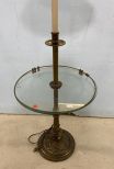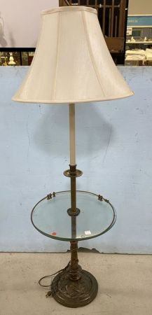 Modern glass lamp table, brass style, 54"h. Modern glass lamp table, brass style, 54"h.