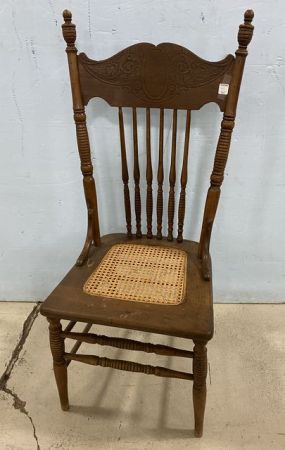 Oak Pressed Back Side Chair, cane bottom, spindle back, 42"h. Oak Pressed Back Side Chair, cane bottom, spindle back, 42"h.