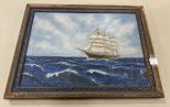Vintage Ship Painting on canvas, has wear, and chips, framed, 15"h., 20"w. Vintage Ship Painting on canvas, has wear, and chips, framed, 15"h., 20"w.