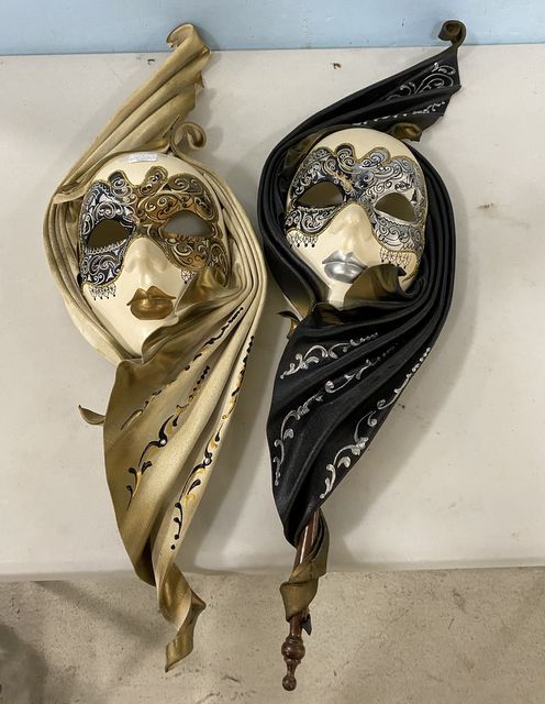Two Signed Mari Gras Decorative Masks, 24"h. Two Signed Mari Gras Decorative Masks, 24"h.