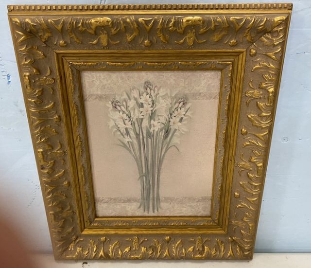 White Mirage I Framed Print, new gold gilt frame, 16"h., 13"w. White Mirage I Framed Print, new gold gilt frame, 16"h., 13"w.