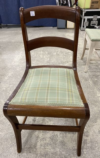Mahogany Sewing Chair, striped fabric cushion, good condition, 32"h. Mahogany Sewing Chair, striped fabric cushion, good condition, 32"h.