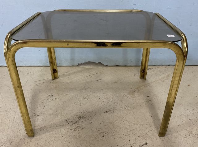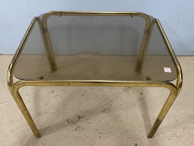 1159 Vintage Brass and Glass Top Side Table