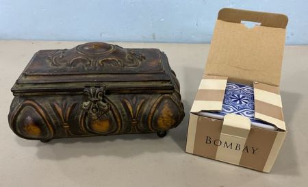 1170 Modern Metal Trinket Box and Bombay Blue and white Coasters