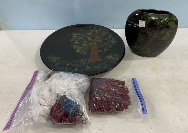 Decorative charger 16"dia., matching vase, decorative balls and marbles. Decorative charger 16"dia., matching vase, decorative balls and marbles.