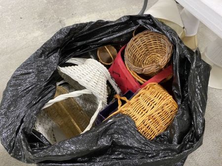Large lot of Assorted style baskets, in black bag. Large lot of Assorted style baskets, in black bag.