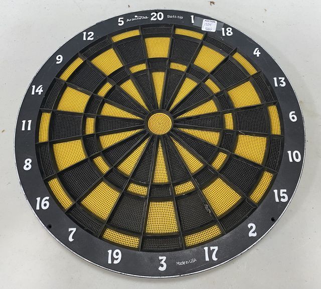 Arachnid soft Tip Dart Board, made in USA, used, 16"dia. Arachnid soft Tip Dart Board, made in USA, used, 16"dia.