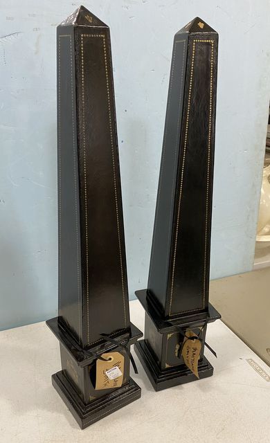 Maitland Smith Decator leather Covered Obelisk, 28"h. Maitland Smith Decator leather Covered Obelisk, 28"h.